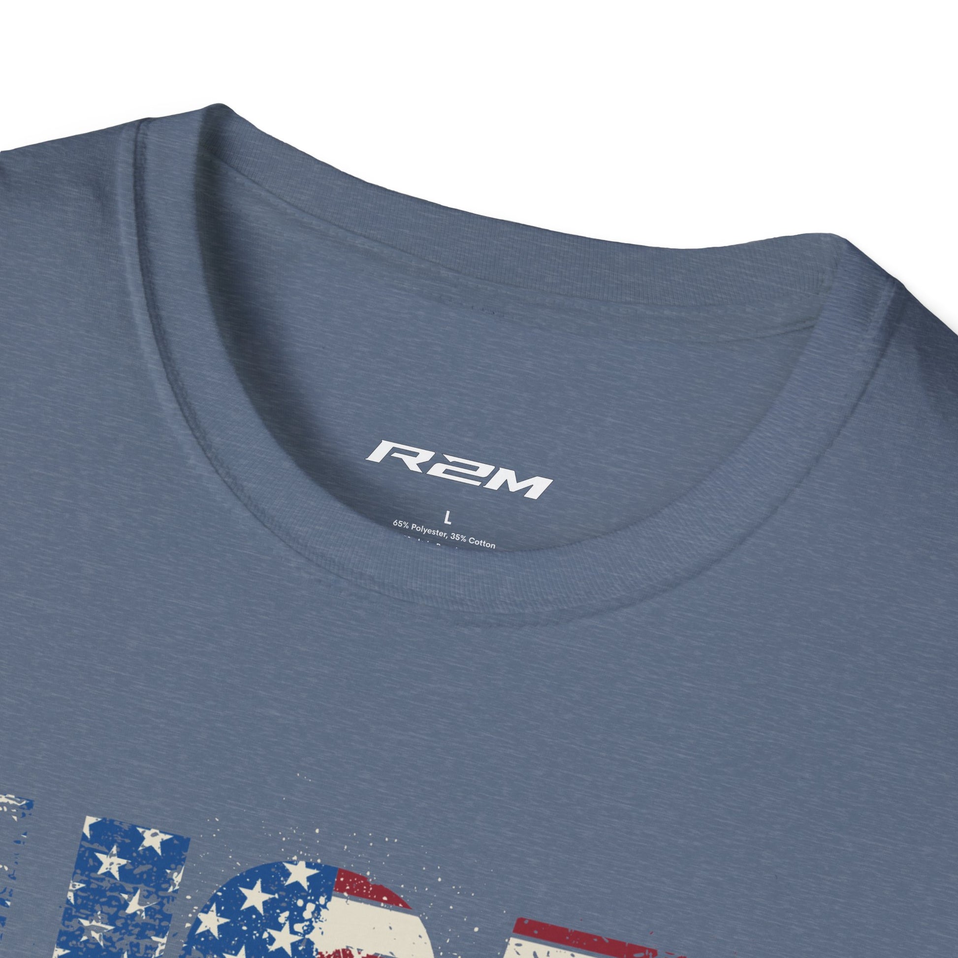 This USA Unisex Softstyle T-Shirt is a patriotic tee perfect for showing American pride. The Fourth of July apparel is made from durable and smooth fabric, ideal for printing. Its classic fit and versatile style make it suitable for any occasion, whether formal or casual. This unisex tee is ethically made with 100% ring-spun cotton, ensuring comfort and quality. Relevant for Fourth of July celebrations and anyone looking to show their American pride.